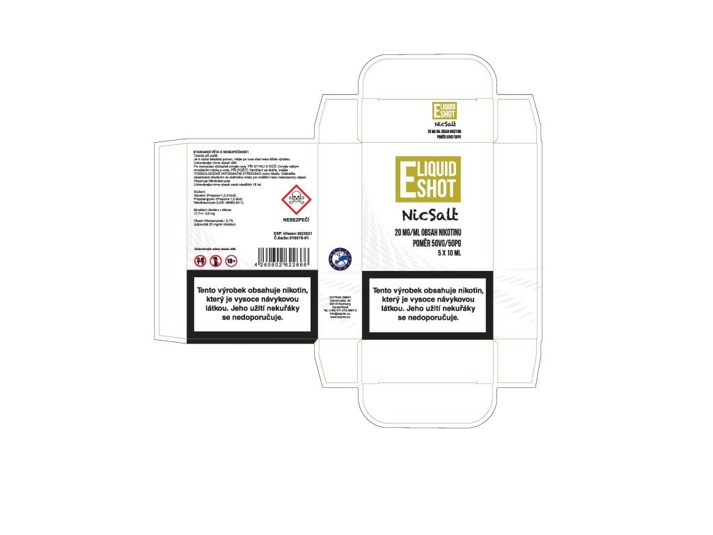 10 ml E-Liquid Shot Booster NICSALT 50PG/50VG 20 mg/ml
