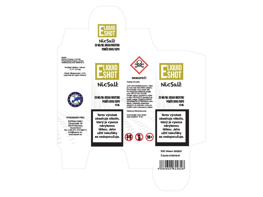 Složení: 50% propylenglykol, 50% glycerín, nikotinové soli